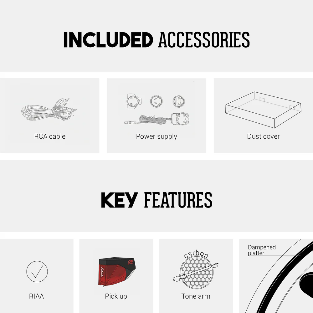 TT-3 PLUS is de perfecte mix van hi-fi prestaties en strak, modern design – allemaal tegen een uitzonderlijke prijs-kwaliteitverhouding. Uitgerust met een gemonteerde Ortofon 2M Red pickup levert hij direct uit de doos een mooie geluidskwaliteit. De stevige bouw en de door riemen aangedreven motor zorgen voor stabiliteit en langdurige duurzaamheid. Bovendien is de installatie met de ingebouwde RIAA-versterker een fluitje van een cent – sluit gewoon je actieve speakers of versterker aan en je bent klaar om te draaien.